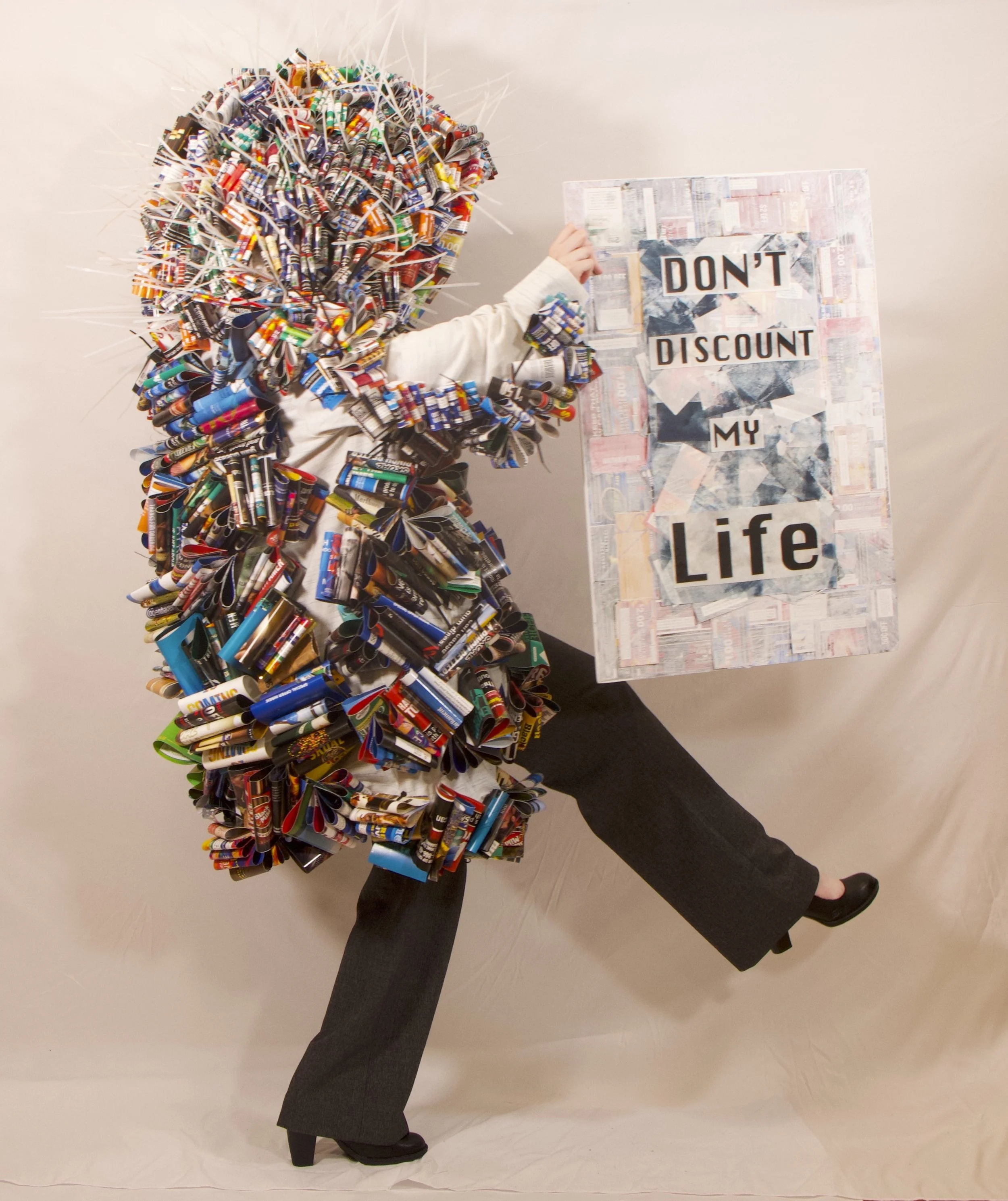 Screen mono printed poster using big tobacco coupons for Don’t Discount My life project